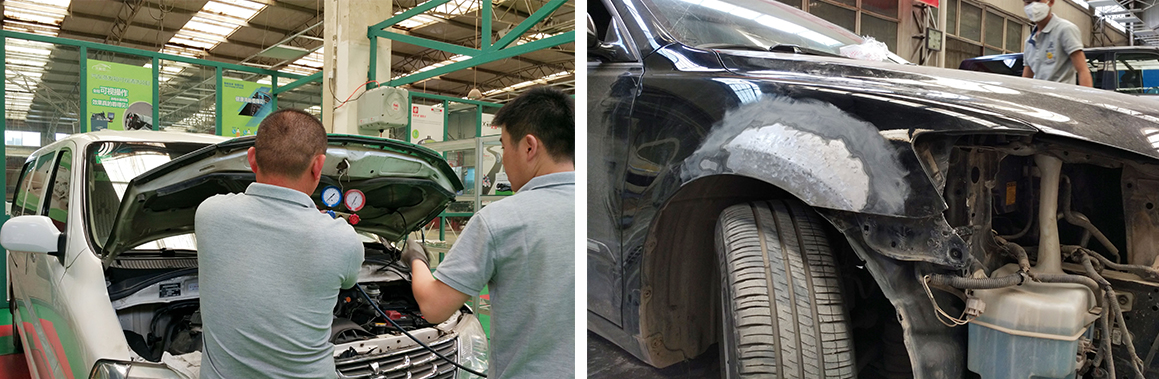 汽車總成維修,是指發(fā)動(dòng)機(jī)的大修,保養(yǎng),以及機(jī)件零修;變速箱總成修理(自動(dòng)變速器,手動(dòng)變速器);底盤修理(貨車后橋修理保養(yǎng),四輪保養(yǎng),方向系統(tǒng)維修);輪胎修理,即各種內(nèi)外胎的火補(bǔ),冷補(bǔ)等; 電器維修(空調(diào),線路,燈光,信號(hào)系統(tǒng),電控系統(tǒng),起動(dòng)機(jī)發(fā)電機(jī)維修更換); 鈑金噴漆,及各種事故車的整形,電氣焊修補(bǔ),補(bǔ)漆,全車噴漆等。